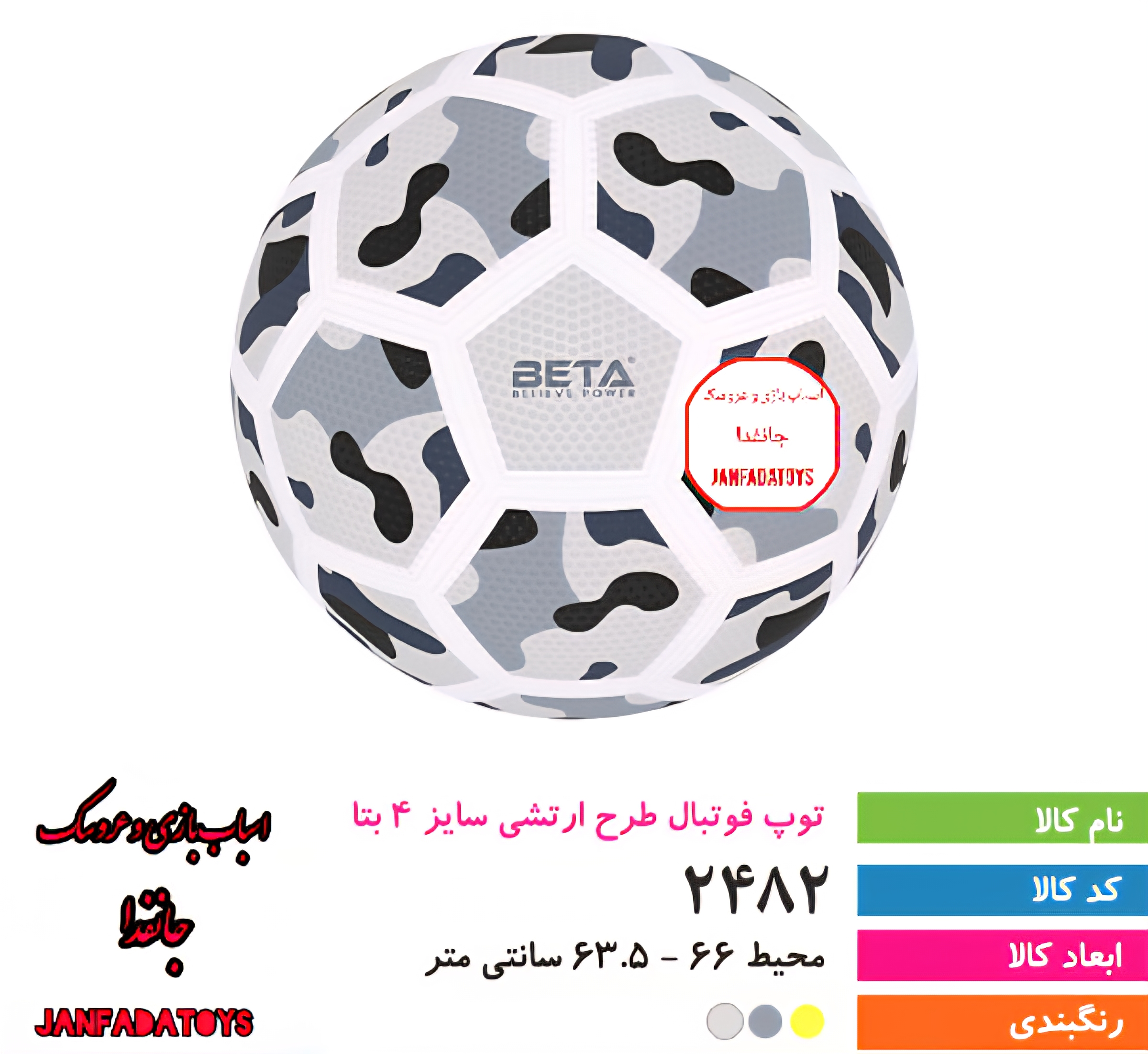 توپ فوتبال سایز ۴ ارتشی بتا کد ۲۴۸۲