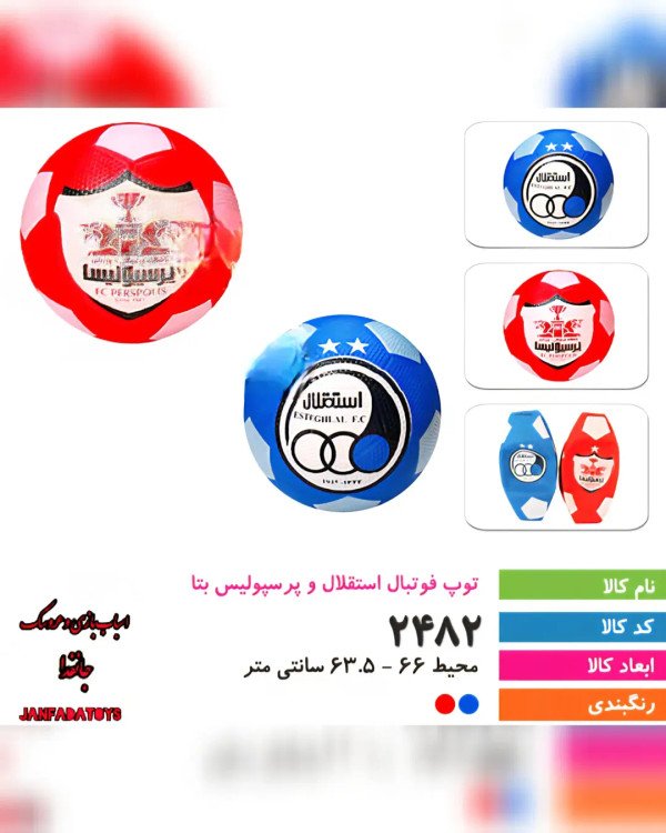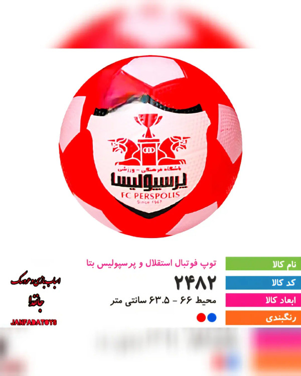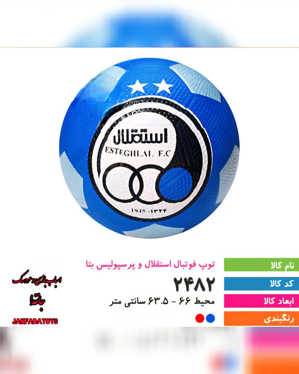 باسلام خدمت دوستان عزیز توپ فوتبال طرح استقلال و پرسپولیس بتا کد ۲۴۸۲ ابعاد:۶۶×۶۳.۵سانت مدل های دیگه عروسک و اسباب بازی در فروشگاهمون موجوده. سفارشات واتساپ و تلگرام و ایتا 09931938032 کانال تلگرام https://te/janfadatoys کانال ایتا https://eitaa.com/janfadatoys مشهد ميدان هفده شهریور (کنار مرکز ۱۷شهریور ) مجتمع تجاری رضا حاشیه پلاک ۳۶.فروشگاه جانفدا #فوتبال#طرح#استقلال#پرسپولیس#بتا#مشهد#۱۷شهریور#جانفدا#پاساژ_رضا#اسباب_بازی#پسرانه#دخترانه#تخفیضات#تویز#جانفداتویز#سوپرایز_تولد#تولیدی#عروسک#اسباب_بازی#مشهدگردی#مشهدتخفیف#