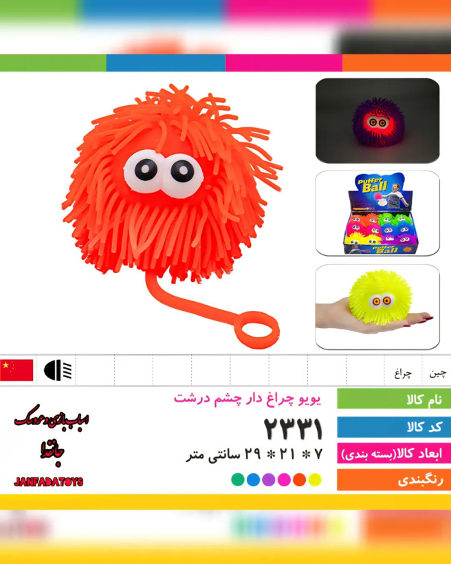 باسلام خدمت دوستان عزیز یویو کرونا چشم قلبه ای کد ۲۳۳۱ ابعاد:۷×۲۱×۲۹سانت مدل های دیگه عروسک و اسباب بازی در فروشگاهمون موجوده. سفارشات واتساپ و تلگرام و ایتا 09931938032 کانال تلگرام https://te/janfadatoys کانال ایتا https://eitaa.com/janfadatoys مشهد ميدان هفده شهریور (کنار مرکز ۱۷شهریور ) مجتمع تجاری رضا حاشیه پلاک ۳۶.فروشگاه جانفدا #کرونا#چشم_قلبه_ای#مشهد#۱۷شهریور#جانفدا#پاساژ_رضا#اسباب_بازی#پسرانه#دخترانه#تخفیضات#تویز#جانفداتویز#سوپرایز_تولد#تولیدی#عروسک#اسباب_بازی#مشهدگردی#مشهدتخفیف#