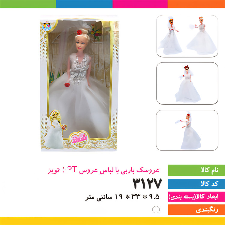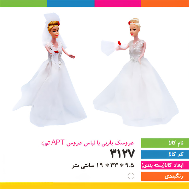 عروسک باربی با لباس عروس apt کد ۳۱۲۷